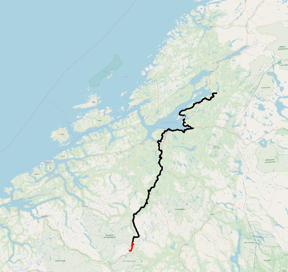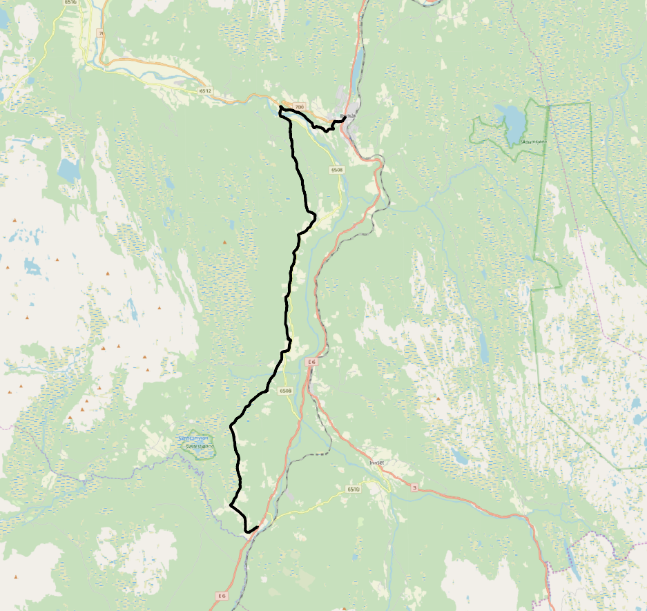 En stund måtte jeg ned på E6’n, pga en stengt gårdsvei, det er første strekket jeg har måttet gå langs motorvei. Ubehagelig med bilene som suste forbi. Trailerne var flinkest til å vike unna. Heldigvis var ikke strekket så langt og jeg fant en sølvskje som fulgte med meg på resten av turen.