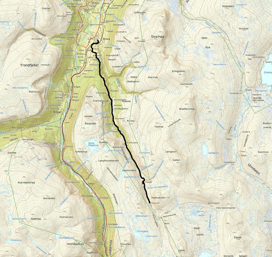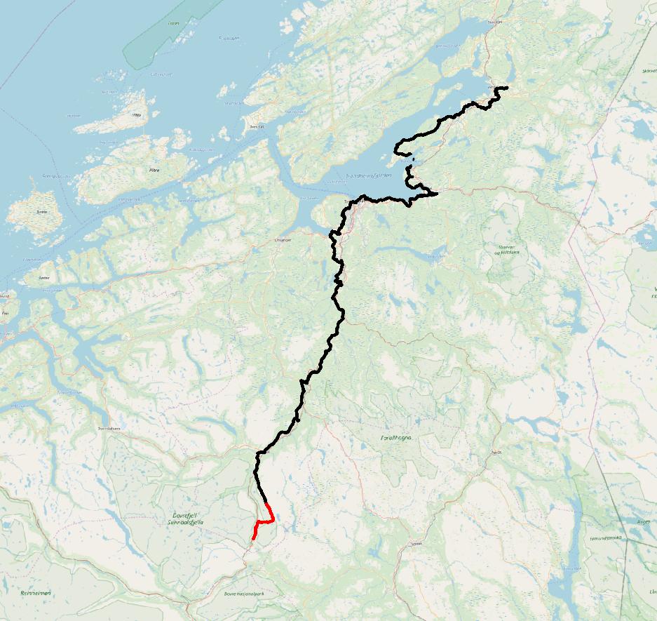 En slags tredje del av reisen er startet. Første del var Stiklestad – Nidaros. Andre delen var til Oppdal og nå tredje del, hvor det blir for lange dagsetapper å dra hjem for å sove. Selv om denne delen av reisen bare skal vare til Hjerkinn, så der den en slags prøve på om jeg vil være en pilegrim fremover. Sekken er tyngre fordi soveposen, toalettmappen og et skift er med, så jeg går saktere, men det gjør ikke noe.