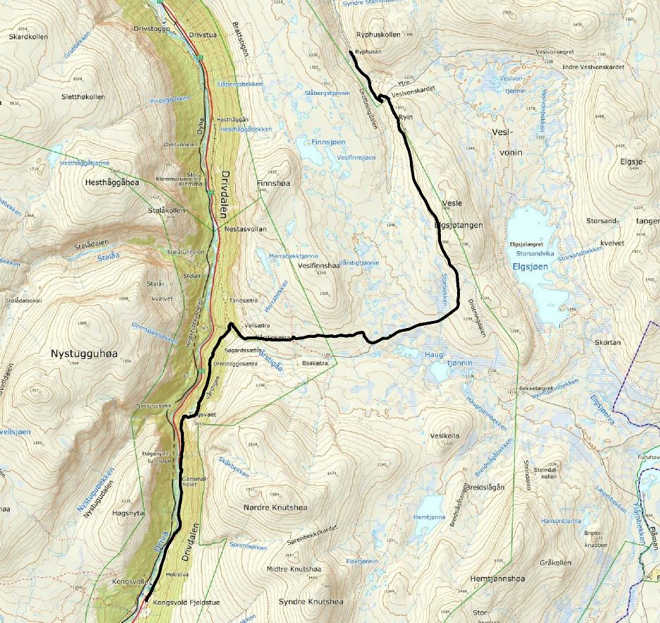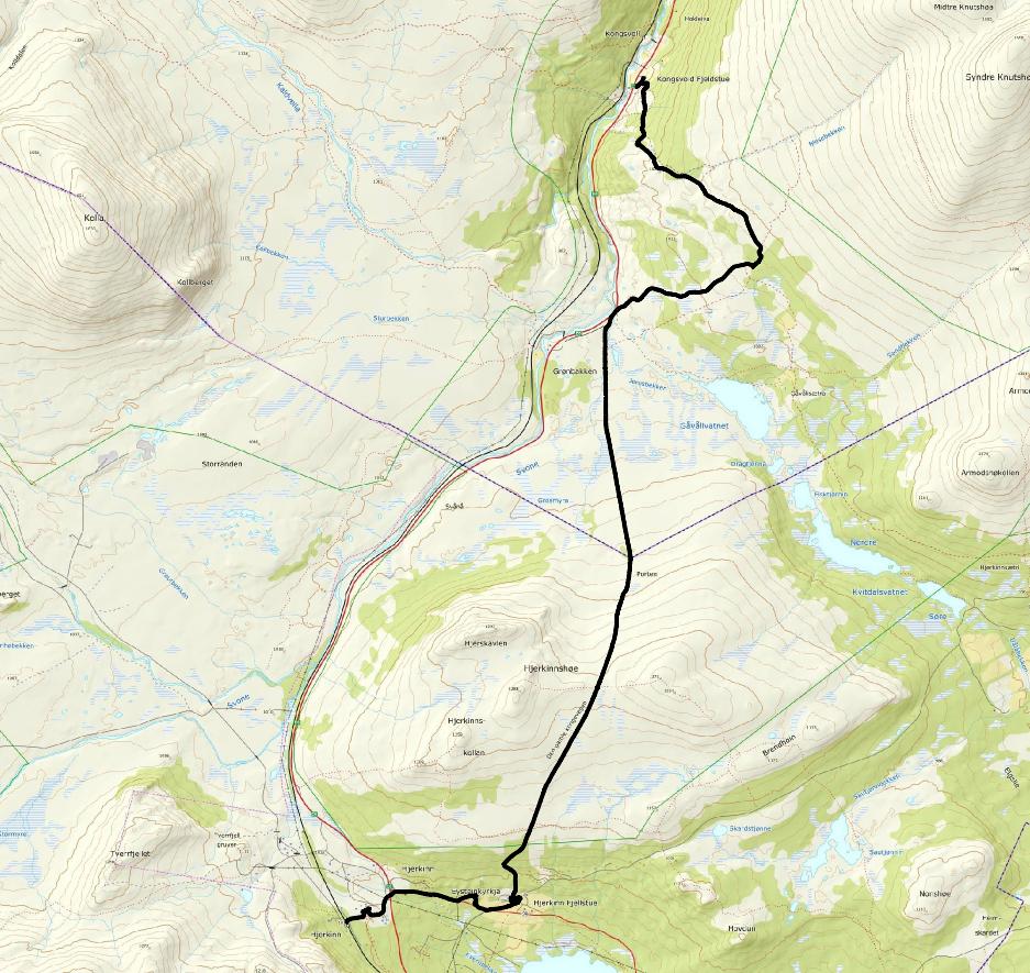 Nå er vi fjellet. Viddene ligger der åpne og innbydende og det er bare å vandre på. Denne dagen føltes lang, men været var ok, så da skal man ikke klage. Nedoverstigningen til Kongsvoll var via Vårstigen, et sted jeg lenge har hatt lyst å vandre på. Ulænt og kronglete var jeg lite forberedt på, så de siste 2 km tok vi asfalten fatt for å rekke en øl før middag (ellers ville vi ikke rukket middagen en gang). 5 retters middag inntatt, luksusvandrer så langt, sovnet 09:15, selv om jeg lovet å holde meg våken lengre. Det var ikke mulig. Helt utkjørt.