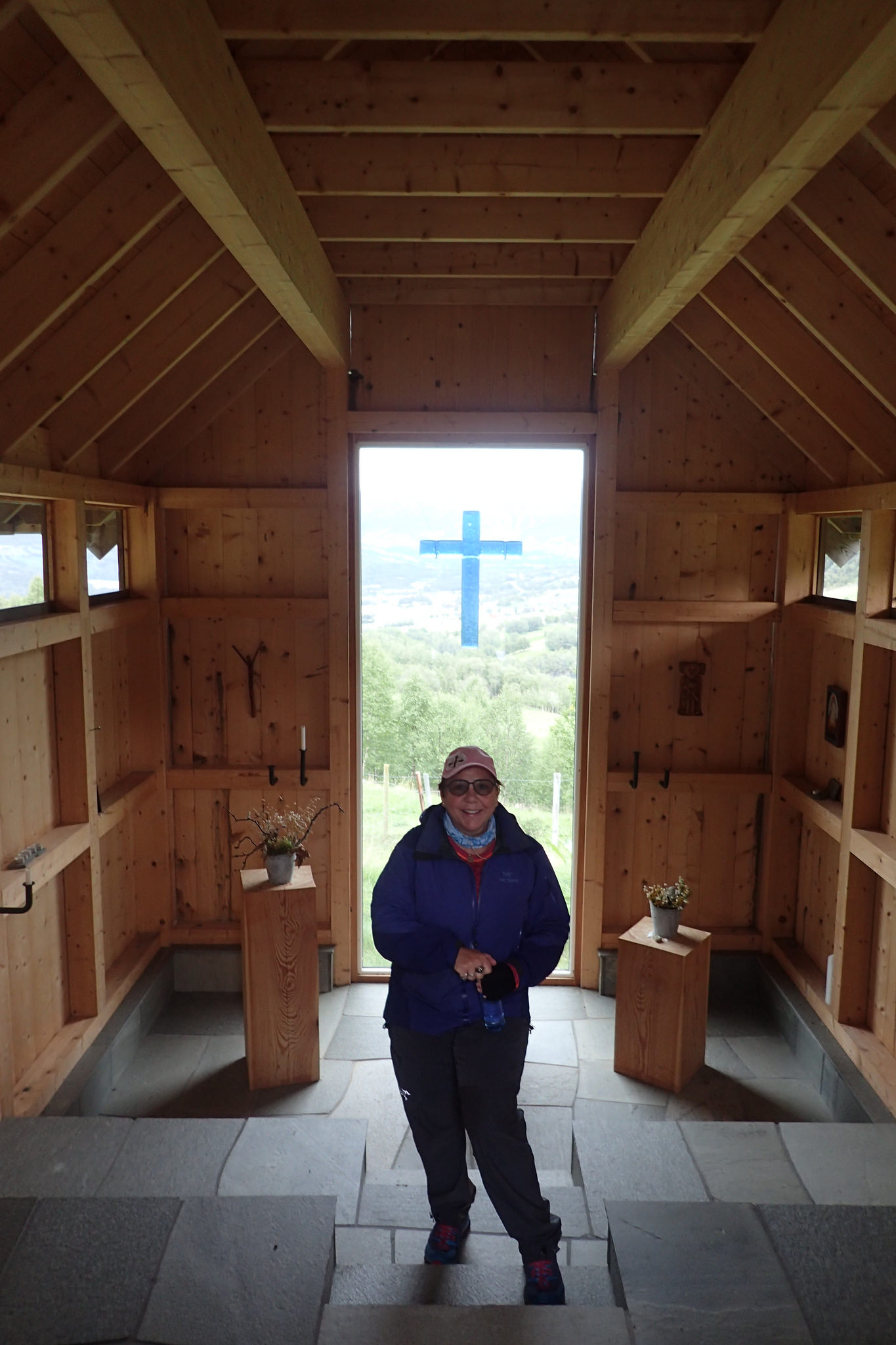 Sekkene ble en middag og noen brødskiver lettere, men det var umerkelig. Helt klart merkbart tyngre sekk og i dag startet strekket med et jevnt sig i slak motbakke. Da er det bare å finne tempoet som passer seg selv og snakke minst mulig. Vi snudde oss mye og så utover Oppdal som ble lengre og lengre borte og igjen undres jeg over hvor nytt alt virket. Jeg har jo kjørt strekket plenty ganger, men aldri fått med meg konturene i landskapet på dette viset. I går gikk vi i skogholt, i dag kom vi oss over det, mens regnet bøttet ned. Selv om vi var utstyrt med regntøy, ponsjoer og fjellduker var vi våt inn til beinet. Vi fikk et fint stopp i kapellet på veien. Et vakkert sted, hvor jeg begynte å skjønne at jeg hadde virkelig tenkt å vandre. Jeg har egentlig aldri følt at dette var mitt valg, men noe som driver meg til det. Beste driven i livet det.