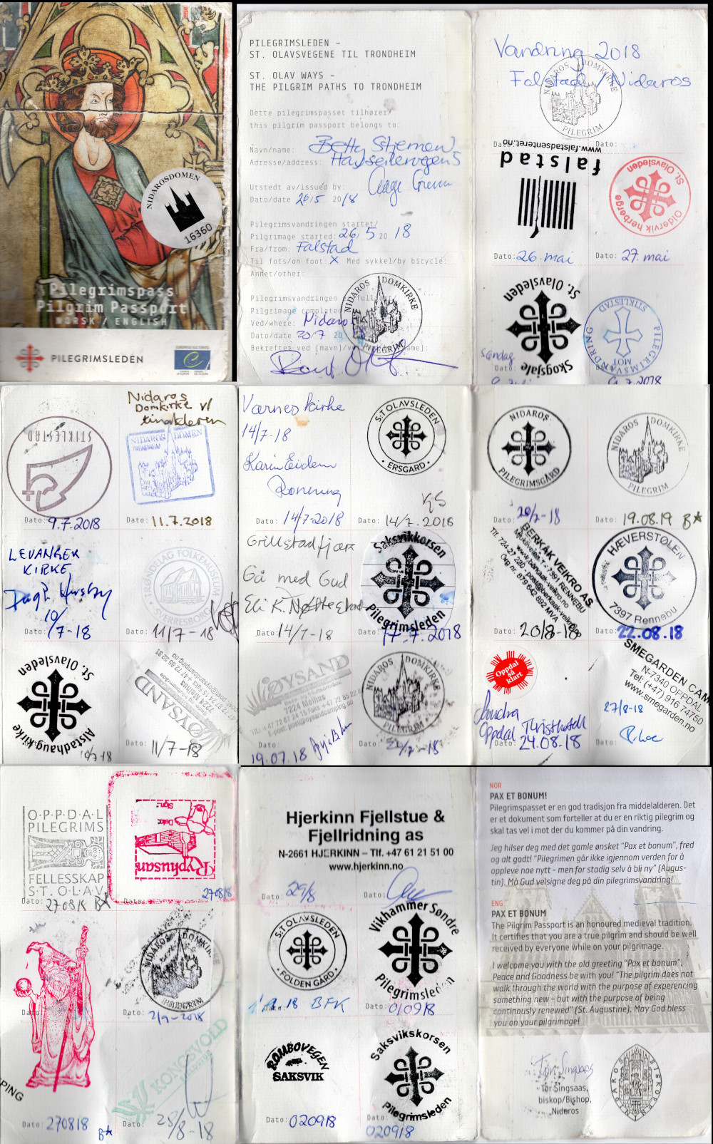 Heldigvis stod ikke våre tyske venner opp før kl 07:00 mot kl 05:00 normalt, som de fortalte. De vandret langt og tidlig. Vi vasket ut Ryphusan skikkelig etter at de var gått, ristet mattene etc. Så glad for liggeunderlaget jeg har tatt med, som jeg legger opp på lakene, som gud hvem hvor mange pilegrimer har lagt. Koselig sted. Godt minne. Og stemplene der er kule. Et med fjøset på og et hvor Saruman fra Lord Of The Rings er på.