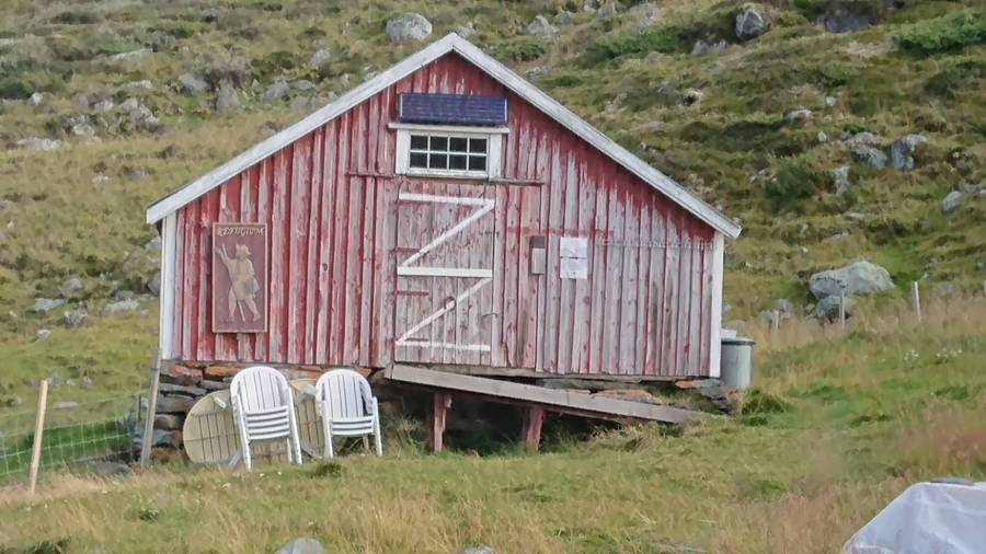 Noen kilometer fra Ryphusan, slo Bernt til en Jegersnaps og det hele gikk litt lettere. Ufattelig godt å se et fjøs, hvor vi skulle sove. 15 sengeplasser på rad og rekke. Uvant, for bortskjemte byveitja, som jeg er blitt. Det var et tysk ektepar der, som nøt godt av vinen vi bar med og de gikk å la seg kl 19:30, det var ikke noe annet å gjøre for oss heller, så vi la oss like etter. Jeg lovet John Arvid at vi skulle være lengre oppe kvelden etter.