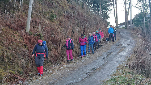 Den første turen 1. oktober var til Bosbergheia sammen med min sønn John Arvid. Vi brukte lang tid og gikk i mørke til Lian. På de siste turene gikk jeg fortere, men dagene ble kortere pga lyset. Aller siste turen, 30.11.,stilte mine venner opp og gikk med på sjarmøretappen. Vi koste oss med champagne og hadde fakler det siste stykke.