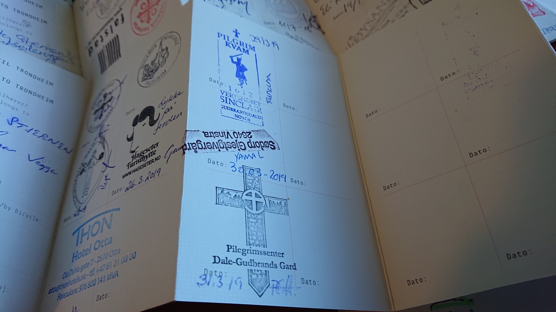 I dag var det min tur å ankomme Dale-Gudbrands Gard, et pilegrimssenter på veien. Hotellet og pilegrimsgården ble åpnet kun for meg i dag og det føles veldig vakkert og voldsomt og ærbødig. Vertinnen der disket opp elgkarbonader. Det var godt å få servert middag etter tre dager med Real Turmat. Hun forsøkte å fortelle meg på telefon før ankomst at hun trengte å vite når jeg kom (hun hadde nok forsøkt å si at jeg var den eneste gjesten), hvorpå jeg forsøkte å ta vare på meg selv med litt klønete grensesetting (fordi musklene strammer seg i halsen hvis jeg opplever press) og så at jeg kom en gang mellom 16 og 18 og trengte ikke middag med det samme. Jeg kom før kl 16 og travet sulten rundt i pilegrimsgården. Ringte henne rett før kl 18. Da hadde hun vært der siden kl 16. Altså – det er ikke lett å være tydelig med nye behov som skal ta vare på en selv. Man prøver jo å være vennlig, så skal man ikke gå i fellen og bli for unnskyldende eller for sær eller for rar eller for mye eller for lite.