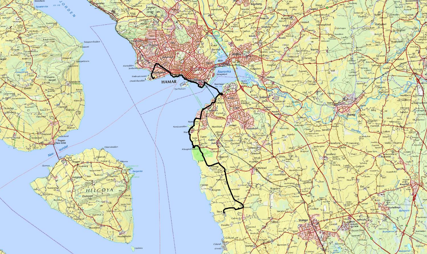 I dag ble det bedre og bedre vær etter som dagen ble gammel. Hanske og stillongsvær riktignok, men ikke hetta på hele tiden. Noen ganger varmet til og med solen. Jeg øynet håp i «hengan snør», for det været jeg våknet til mandag morgen var ikke vandrevær så jeg ble over en natt til. Lurte på hva jeg holdt på med, når det ble så kaldt., men en skikkelig god natts søvn gjør underverker. Kroppen funker, psyken er på plass. Tar små gode beslutninger hele tiden. Nå bor jeg på et gods: Staur Gård i Stange. Ikke rart det koster. Det var i passelig avstand til Hamar for meg, og passelig avstand til Tangen i morgen.