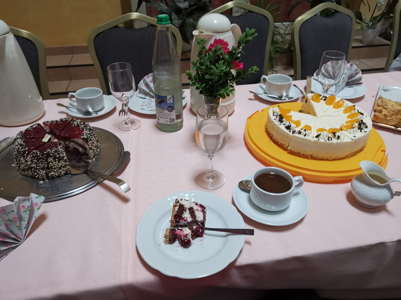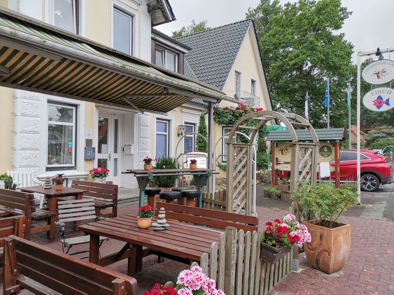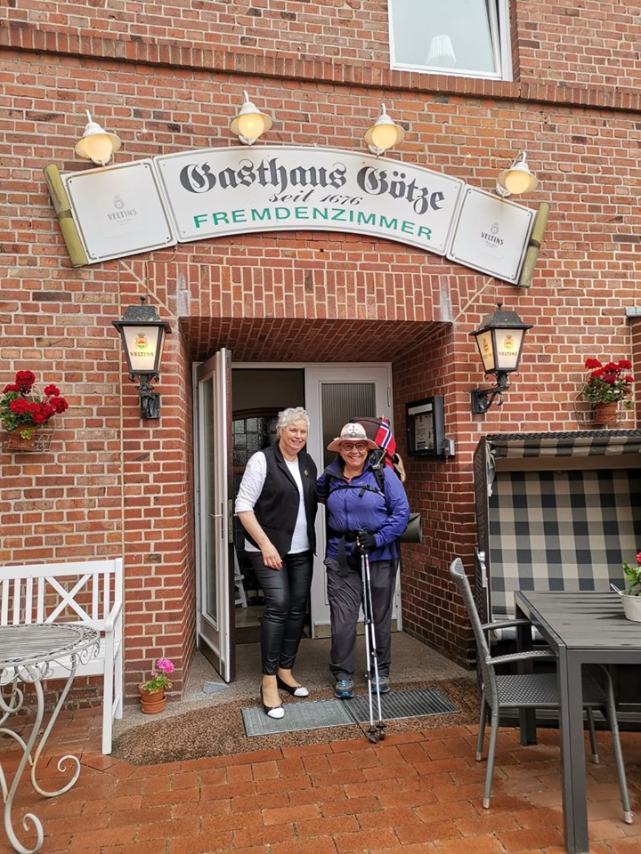 Akkurat fått orden på matopplegget igjen, så ramler jeg inn i et bursdagsselskap i Hemslingen, 6 km fra der jeg skal bo. Planen var å spise middag der, men det var for tidlig på dagen. Eieren bydde på kaker. Jeg har aldri vært særlig glad i kake, men i dag spiste jeg 3 stykker. Gikk sprudlende der i fra. Fått snakket med en kvinne på 90 år. Vel, vi pratet om været på hver vårt språk og hvor mange barn vi har. Utrolig hva man får til med litt gestikulering. Sønnen, som var eieren, hadde mistet sin kone for 19 år siden pga kreft. Han hadde oppdratt barna aleine. Han kjente Fredrikke som jobbet på forrige sted jeg bodde på, Gasthouse Götze i Scheeßel. Hennes svigermor jobbet hos han. Deres verden er også liten. Nå sitter jeg i baren i Heidehotel Landhaus Tewel og har nylig hilst fra jubilanten i Hemslingen til eieren her, som straks ringte til han og gratulerte han med dagen.