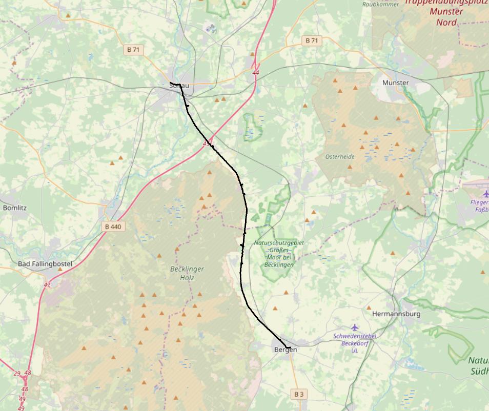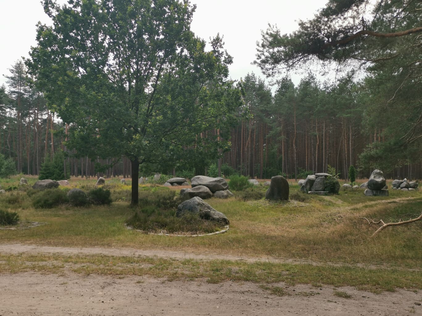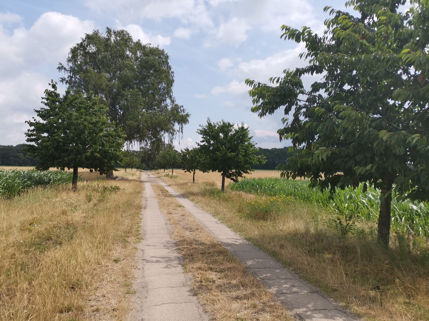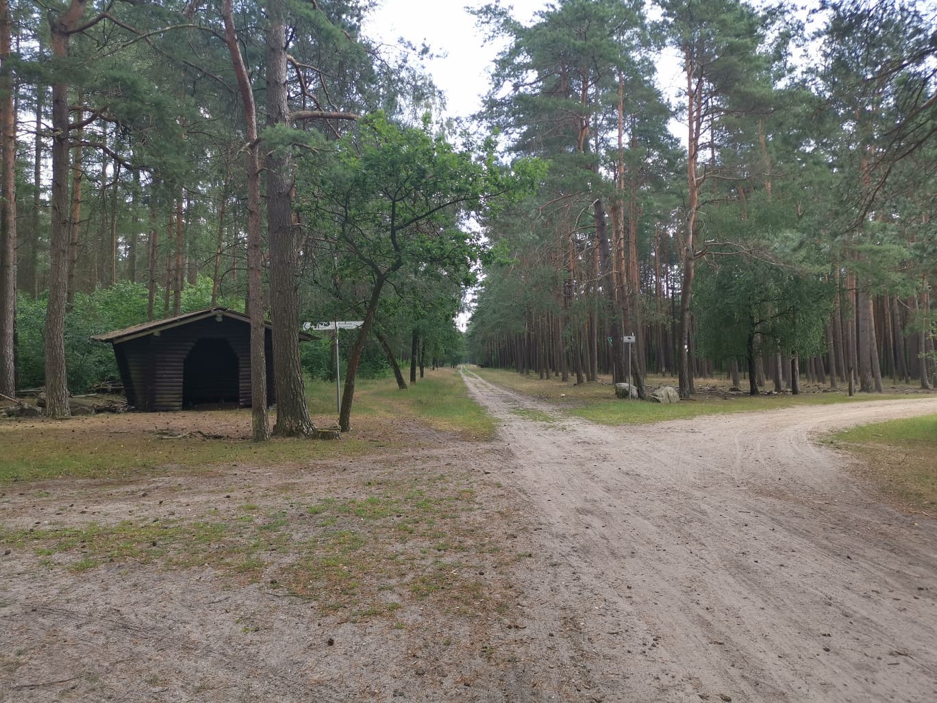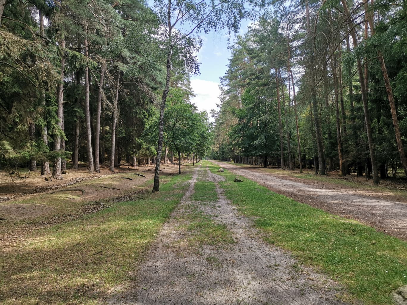 Alle veier fører til Rom, også via leden. Går den så ofte jeg kan, ut i fra form og avstand til steder å bo. Skal man gå i 5/6 uker kan man sikkert være slavisk og gå alle krinkler og kroker, men skal du vandre et halvt år, må du velge det som går best totalt. Dessverre har leden masse asfalterte veier også, det er siste sort. Beina trenger mykt underlag. I dag gikk jeg gjennom en vakker skog og der var det 3 felts med godt terreng. En sti for hester, en for gående, og en brosteinsaktig sak til høyre. (Området er en del av Naturpark Lüneburger Heide)