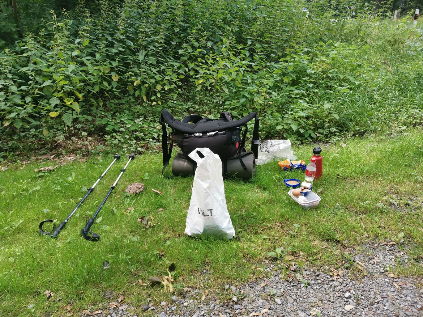 Kan ikke tillate meg å bli lei av å pakke opp og ned og opp igjen, for det skal jeg gjøre hver dag i 3 måneder til. Det også sitter i hodet. Bestemme seg for om det er greit å pakke opp og ned av sekken, om det er langt igjen til Roma eller om det er kort til Harz-fjellene. Om glasset er halvtomt eller halvfullt.