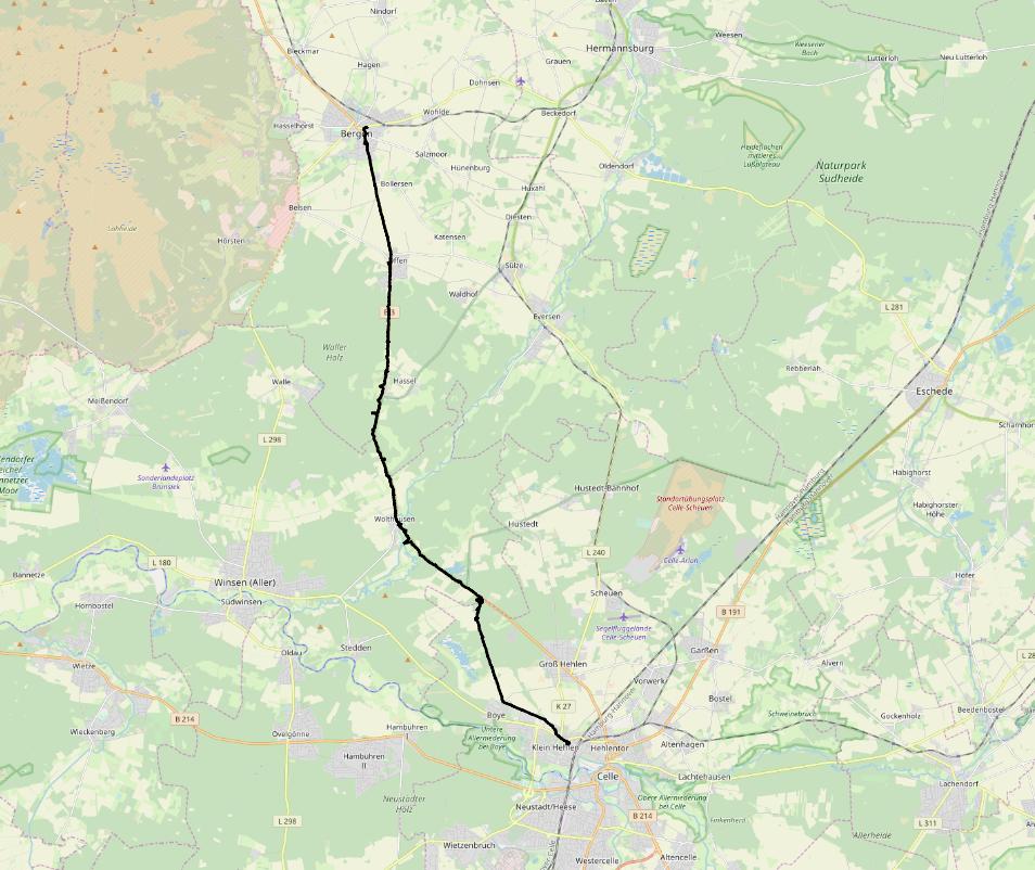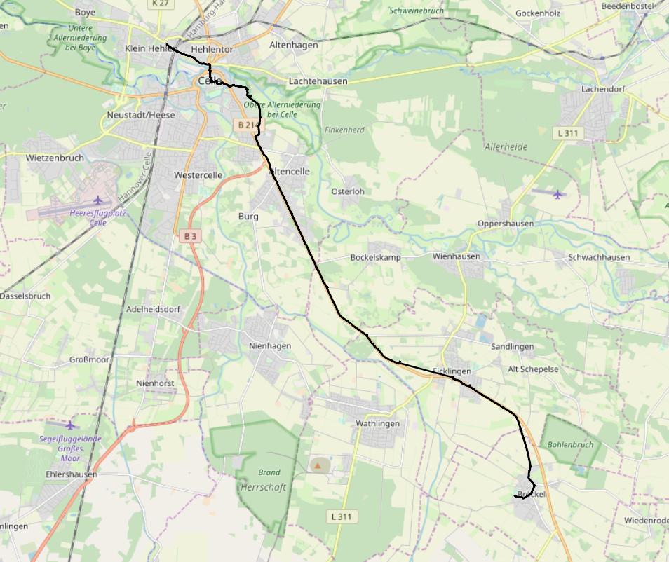Underlig dag, som ble natt, så ble det denne dagen, hvor jeg startet å vandre kl 09:30. Kjøpte mat på bensinstasjon, siden det er søndag. Vokter meg vel for «junkfooden», men kjøpte en kald svart kjøttkake som var sykt god til lunsj. Inntok havregrøt en time før innmarsj til Celle, men her jeg bor (Heidekönig Hotel Celle) hadde de mat, så det ble en schnitzel med vanlig kartoffel og salat. Godt.