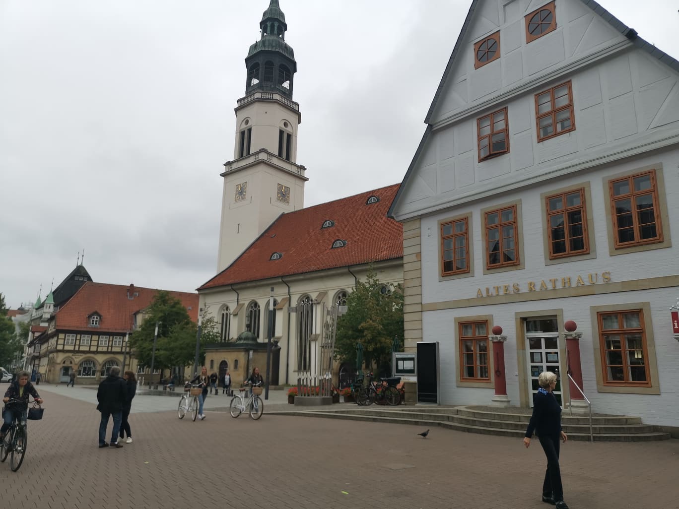I dag var dagen for å treffe Britta, som jeg har frekventert CVI i DK med i mange år. Vi er en gjeng som har greid å holde sammen, og hennes by er Braunschweig. Jeg gikk til en sportssjappe først og fikk kjøpt 4 middager, noe à la Real Turmat. Skulle kjøpe caps, men de hadde bare for små, så jeg må gå med den hatten jeg har som gir meg følelsen av å være en uteligger, fyllik, pilegrim, men på en måte kan jeg vel identifisere meg med de alle, selv om jeg tror at jeg er innenfor 🙂 Men i dag gikk jeg med byklærne og bycapsen.