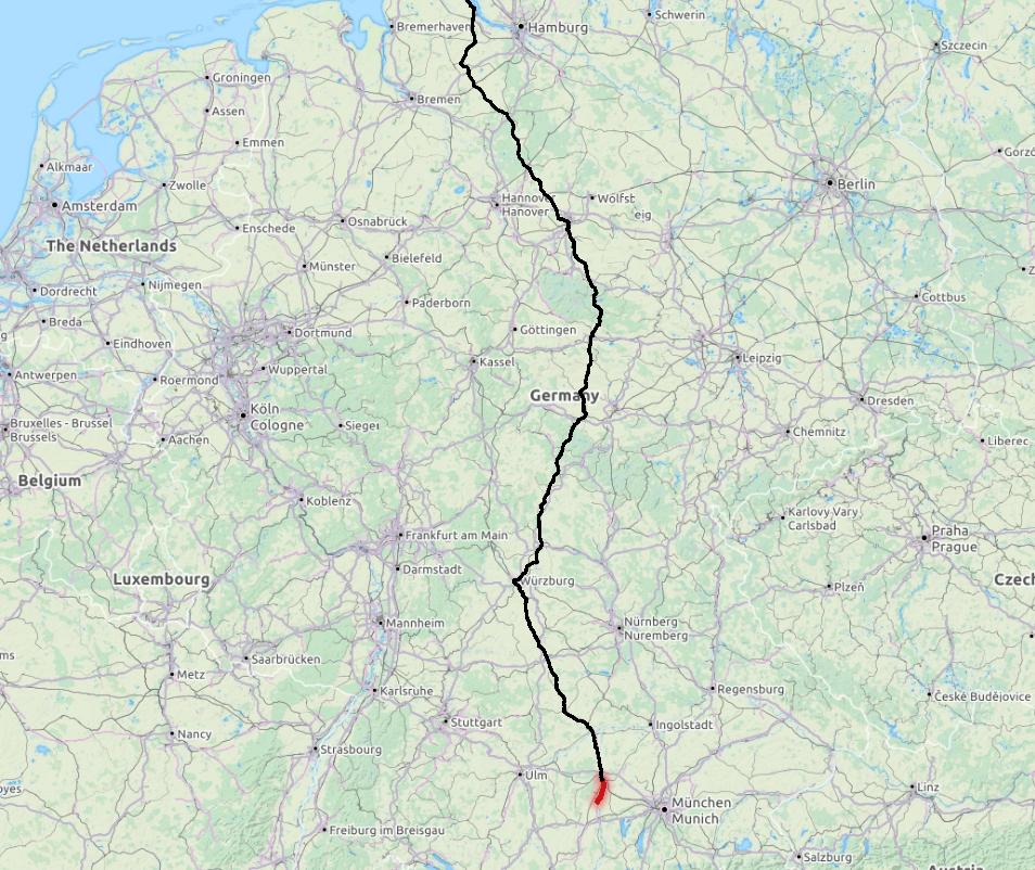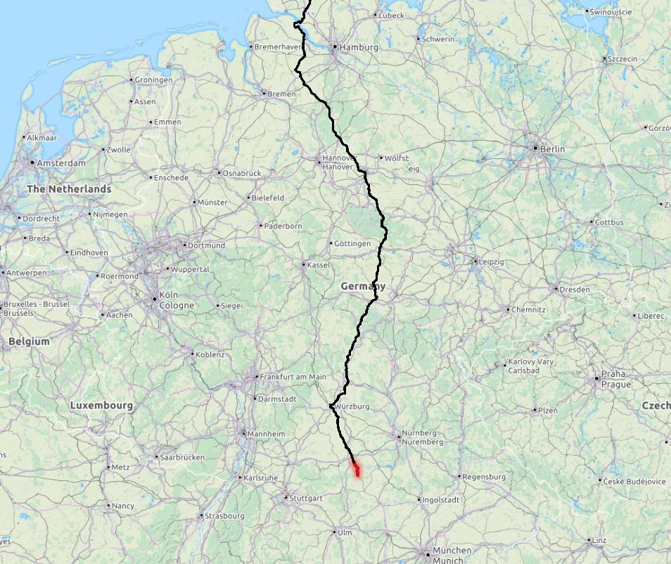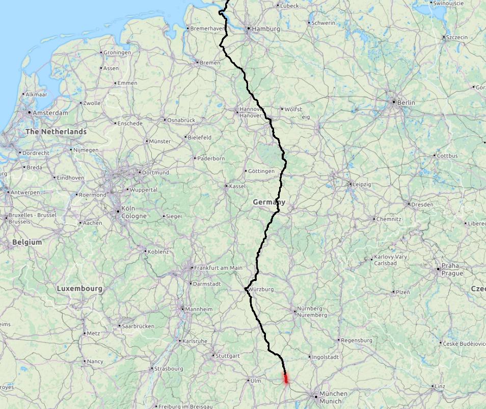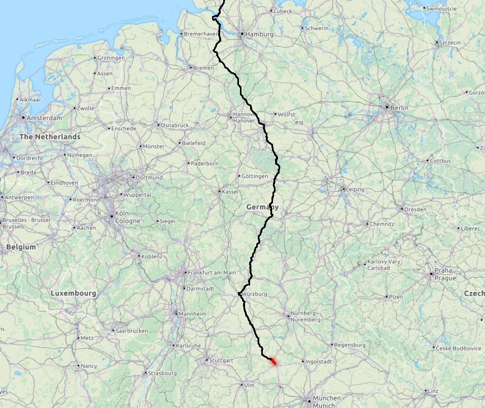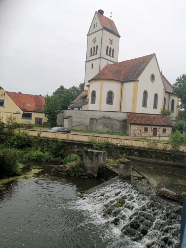 Taxien hentet meg kl 10 og kjørte meg tilbake til der jeg slapp trackingen i går, i Donauwörth. Gikk 100 meter og rett inn i en katolsk kirke og tente et lys for John Arvid som har begynt på folkehøgskole i går. Jeg har vært så spent. Skulle ønske jeg var der og kjørte han dir, men faren har gjort en utmerket jobb. Nok kjærlighet så blir det bra og trygge sønner. Han virker som han mollkoser seg, selv om vemodet tok han litt i går. Vanskelig å gi slipp på ‘det som var’. Derfor folk blir sittende hjemme, jobbe seg i hjel eller spise seg usunne eller løpe for livet, eller drikke for å døyve osv osv. Det er lett å la det være å utfordre seg selv, for det smerter å vokse.