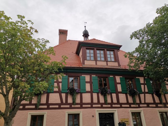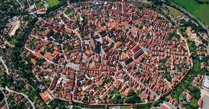 Nördlingen er byen det ramlet en meteor ned i for 14, 5 mill år siden og byen er bygget opp midt inn i krateret. Ringmuren er bygget på en naturlig jordvoll som er igjen etter krateret. Veldig snedig. Romerne bygget et fort inni krateret rundt 85 år etter Kristus. Byen har 898 år e.Kr som stadfestet dag.