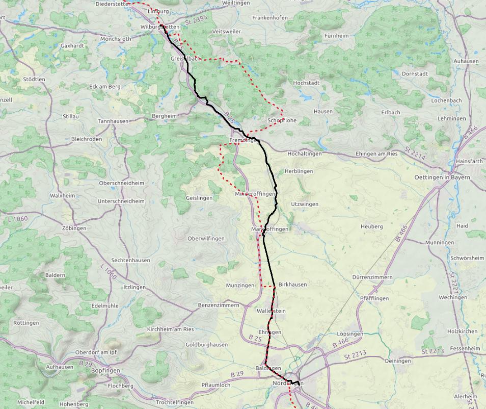 I dag steg selvrespekt et par hakk faktisk. Jeg tok bussen tilbake til Wilburgstetten hvor jeg avsluttet trackingen dagen før hviledagen og fortsatte min vandring i steikende solskinn. Det gikk så «fette» trått pga varmen, men det hjalp at det var mye vakkert å skue.