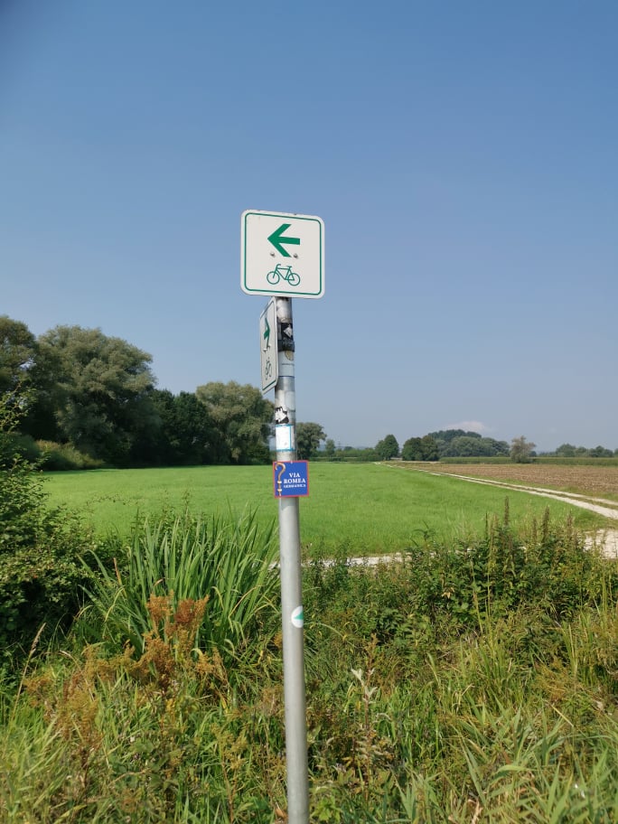 Perfekt vandre vær i starten. Litt kjøligere. Det hadde regnet om natten så det luktet faktisk frisk, selv om det var by. Vandringen gikk lett til tross for asfalt. Føltes som å gå Elgeseter gate i timevis uten at noe endret seg. Støy og styr. Prisen man betaler for å være en pilegrim og ville gå hele veien til Roma. Inngang og utgang av by er arbeidsom på en annen måte enn resten av vandringen.