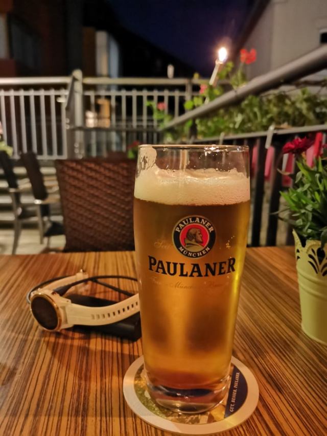 Jeg kom fram, litt over 18. Bernt varslet på Booking.com for meg og i resepsjonen satt en smørblid kvinne og ønsket meg velkommen. Null mat, men et kjøleskap fyllt til randen av øl. Bare å forsyne seg, sette opp et kryss for hver og betale i morgen. Spørs hvor mange ganger jeg gidder å gå trappen, foreløpig har det blitt en. Ellers går jeg ingen steder før frokost i morgen. Men jeg er jo ikke tapt bak en vogn. Spiser opp det jeg har bært på. Å være på tur det kan jeg.