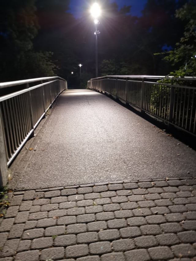 Kveldsgåing i mørke var noe nytt. Møtte på en hindring og da er jeg glad for å ha vært punker. Stengt gangfelt over en bro. Jeg bare gikk rett igjennom. Glad folk hadde gått hjem fra jobb så jeg slapp mas. Litt risikofylt men jeg orket ikke å plusse på flere kilometere. .