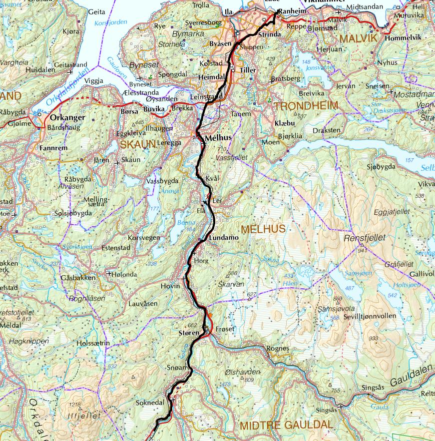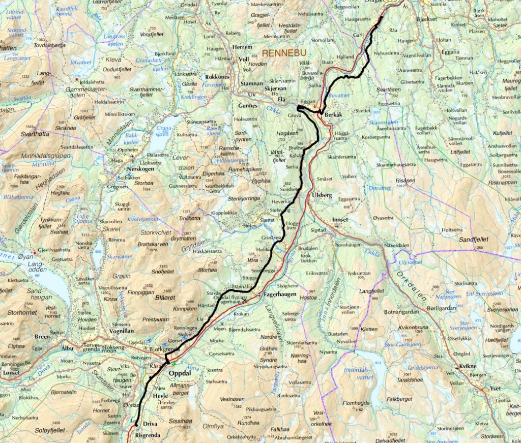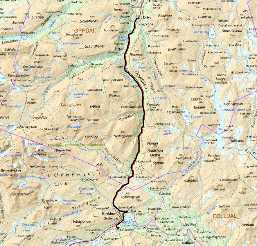 Dagen skinte opp og vi fikk kilometer på kilometer med grus, i stedet for E6 og i mine gamle vandrespor til Berkåk og Kongeveien til Oppdal.