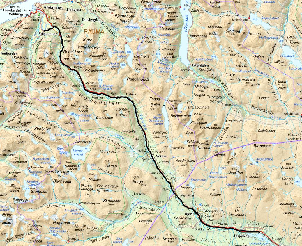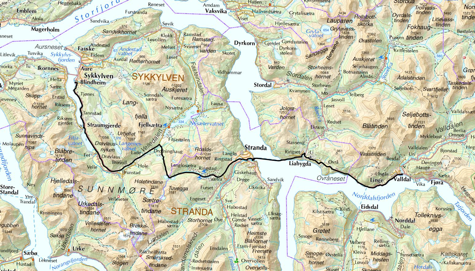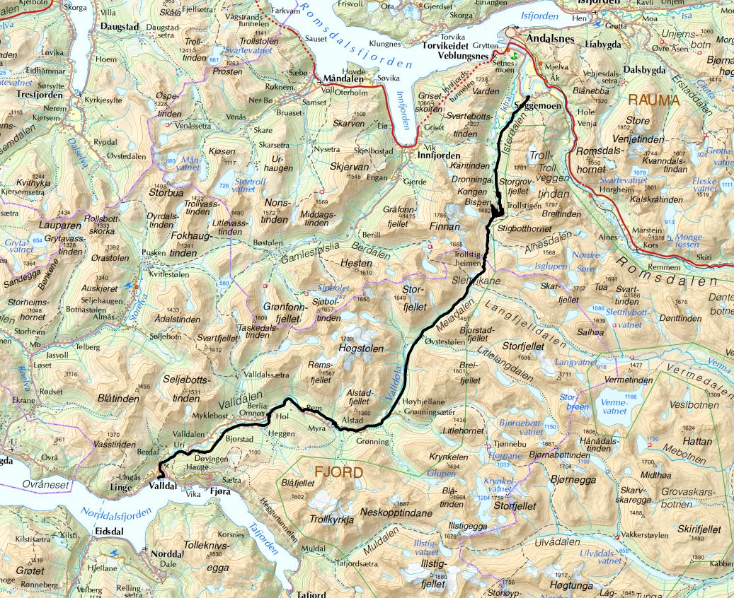 Eieren pratet lenge med oss, og vi fikk anbefalt en sidevei, så vi fikk kjørt litt på grus igjen. Der gikk også pilegrimsleden (Valldalsleden) og den må være utrolig spennende å gå. Kanskje kan det bli den og, en gang.