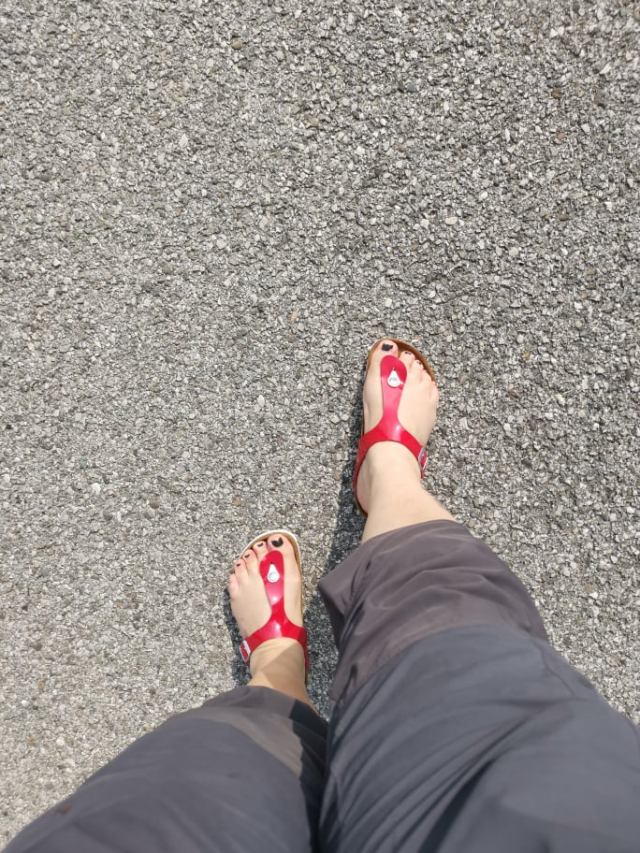 I dag var det varmt gitt. Jeg gikk med Birkenstock-sandalene de første 10.000 stegene, for å få en forandring. Beina har gått med ullsokker i 5 måneder nå og jeg har en idé at jeg skal lufte de litt mere enn den ene hviledagen. Går alltid med sandalene på hotell og er flink med å smøre beina morgen som kveld. Har mange fine ritualer, som gjør dette levelig.