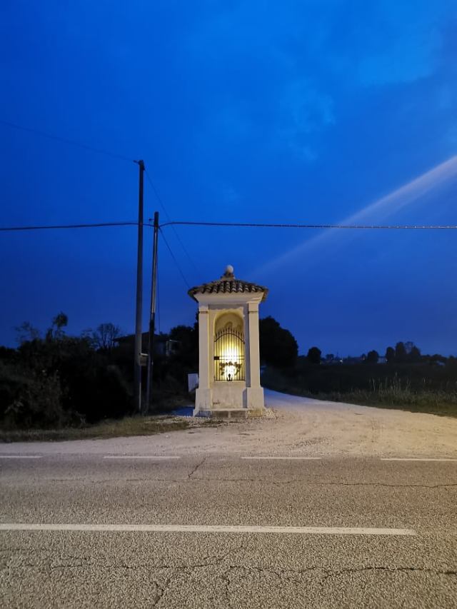 Så kom det en katolsk kirke. Der gikk jeg inn, som jeg gjør i alle kirker som har døren åpen. Betalte 2 euro for et lys, som jeg gjør i alle kirker på min vei, og tenner det for den og den på min vei, så observerer jeg de som bruker kirken og takker for meg etter snaue 10 minutt. Huset ved siden av var en bar. Som jeg også besøker. Går på do og bestiller et glass hvitvin. 1 euro. Altså jeg får to glass hvitvin for 2 euro, det samme som et lys koster og jeg vet sannelig ikke hva som gav mest uttelling,…. eller kanskje jeg gjør det. Nei, jeg er usikker. Samma det. Jeg kom frem.