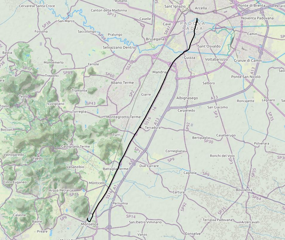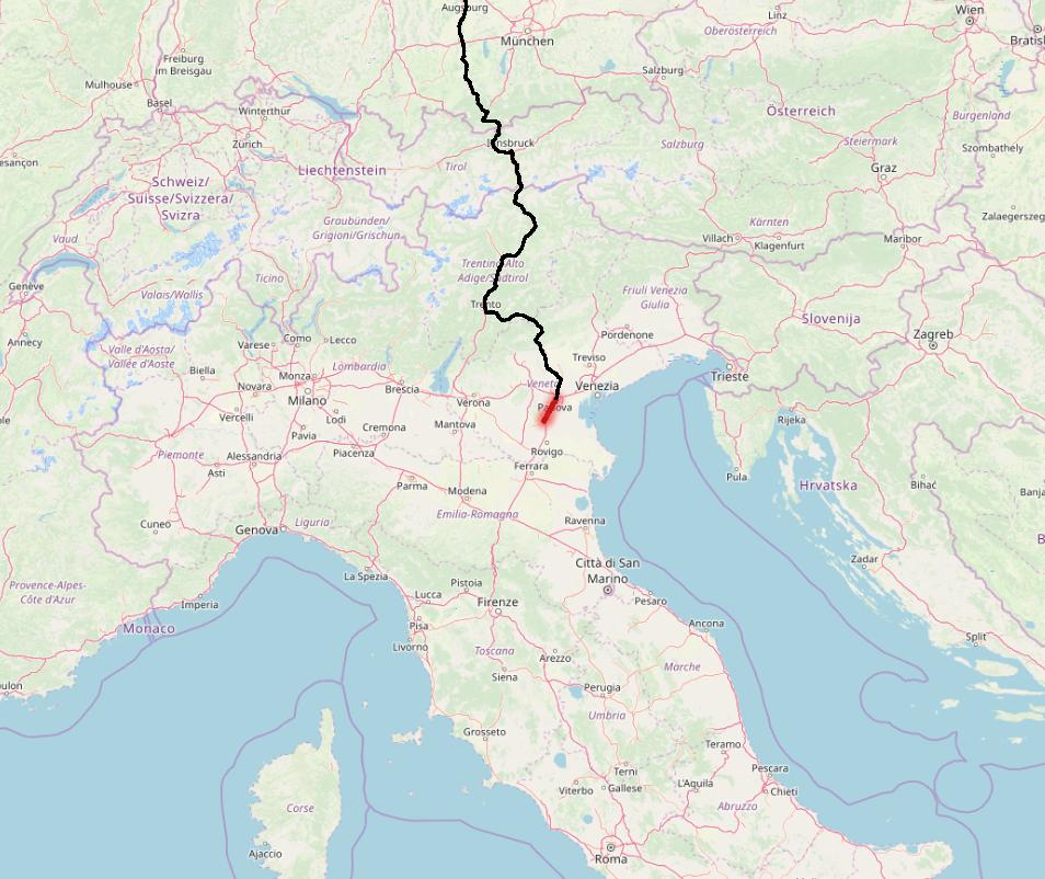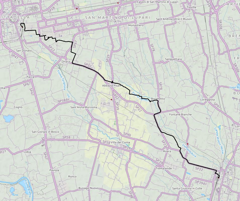 I dag gikk jeg hverken Via Romea eller Cammino del beato Enrico. Jeg gikk veien Bernt og jeg laget for å få 3 etapper til Padova, som var mindre i kilometer og som gav tilgang til tog, så jeg kan pendle de neste 2 dagene for å få gått hele strekket.