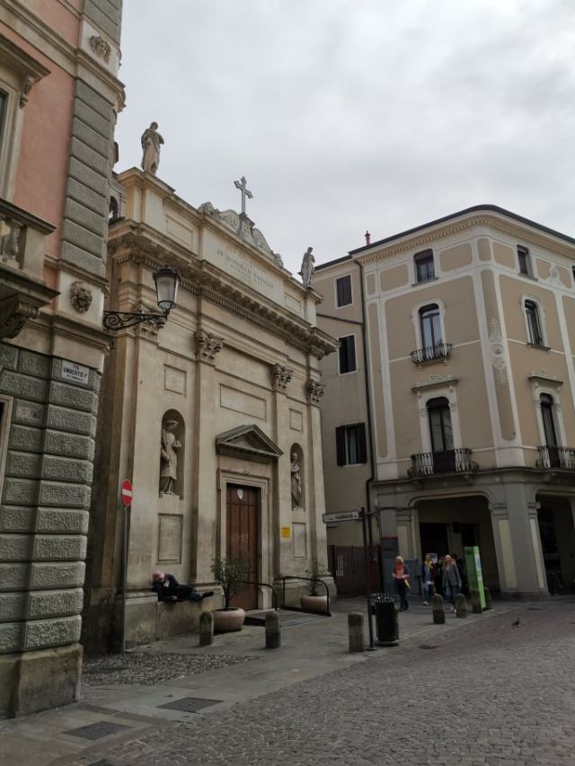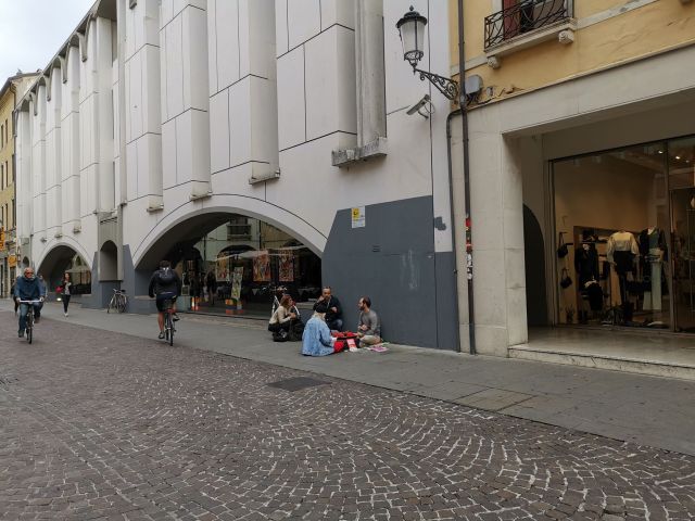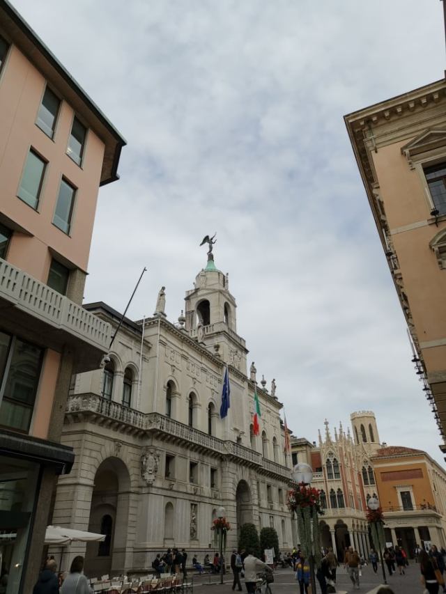 Gikk gjennom Padovas gater i morges. Var innom Scrovegni-kapellet som rommer Maria-bildene av Giotto. Der var det 3 skoleklasser og to busslaster med pensjonister. Jeg skjønte straks at dette ville ta halve dagen og 2 mil krever sine timer. Så jeg gikk der i fra etter litt kikking omkring.
