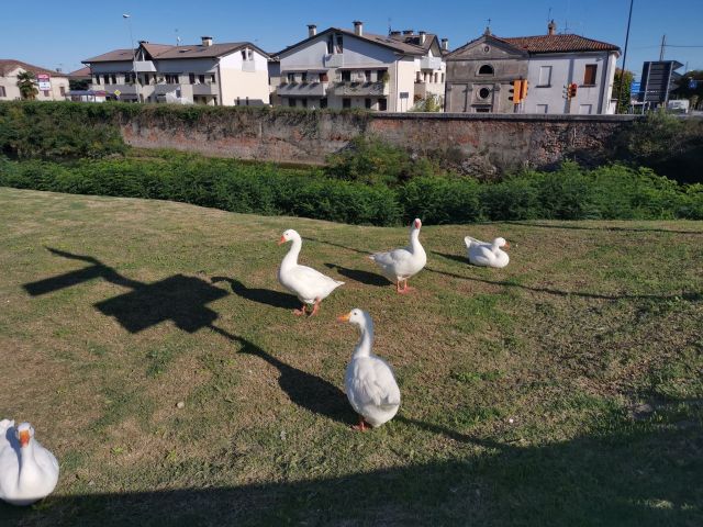Jeg syntes det var veldig okei der jeg gikk, helt til han forklarte hvor fantastisk det var der jeg ikke vandret. Jeg visste godt at Via Romea fortsatte langs elven jeg hadde så stor glede av i går. Rart hvor lett det er å la seg vippe av, gitt. For avgjørelsen tok jeg i går. Valget var tatt. Til fordel for noen goder, som er vanskelig å oppdrive på denne reisen. Jeg må få sove i samme seng flere netter. Ringte kontrollsenter et som hjalp meg å huske fordelene med å velge løypen rett fram og ikke langs elven som hadde i dag utgjort 5 kilometer mer og nye hotell i 3 dager. Nå er jeg innlosjert i Padova og drar tilbake til Citadella i morgen tidlig og fortsetter der jeg slapp.