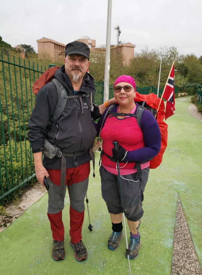 Til de som heier på oss og sier vi er snart fremme. Jeg kan love at det ikke føles slikt på tampen av en 23 km dagsmarsj når mørket faller på. Da er det neste overnattingssted, middag, en dusj og en seng som er i fokus.
