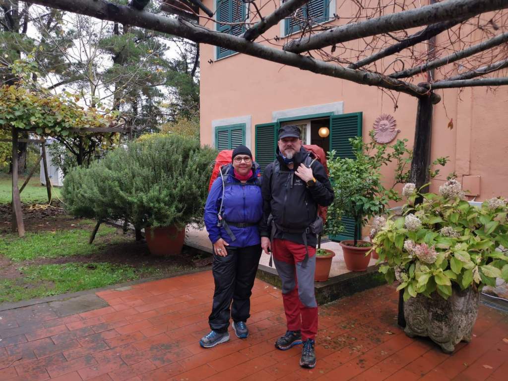 Etterhvert kom det lovede regnet og vi ble etterhvert svært så våte før vi kom fram til B&B Casale Vicino som viste seg å være et privat hus med en snill gammelmann som sper på pensjonen med å leie ut noen rom. Litt for privat for oss, men tak over hodet må man ha om natten, så da så.