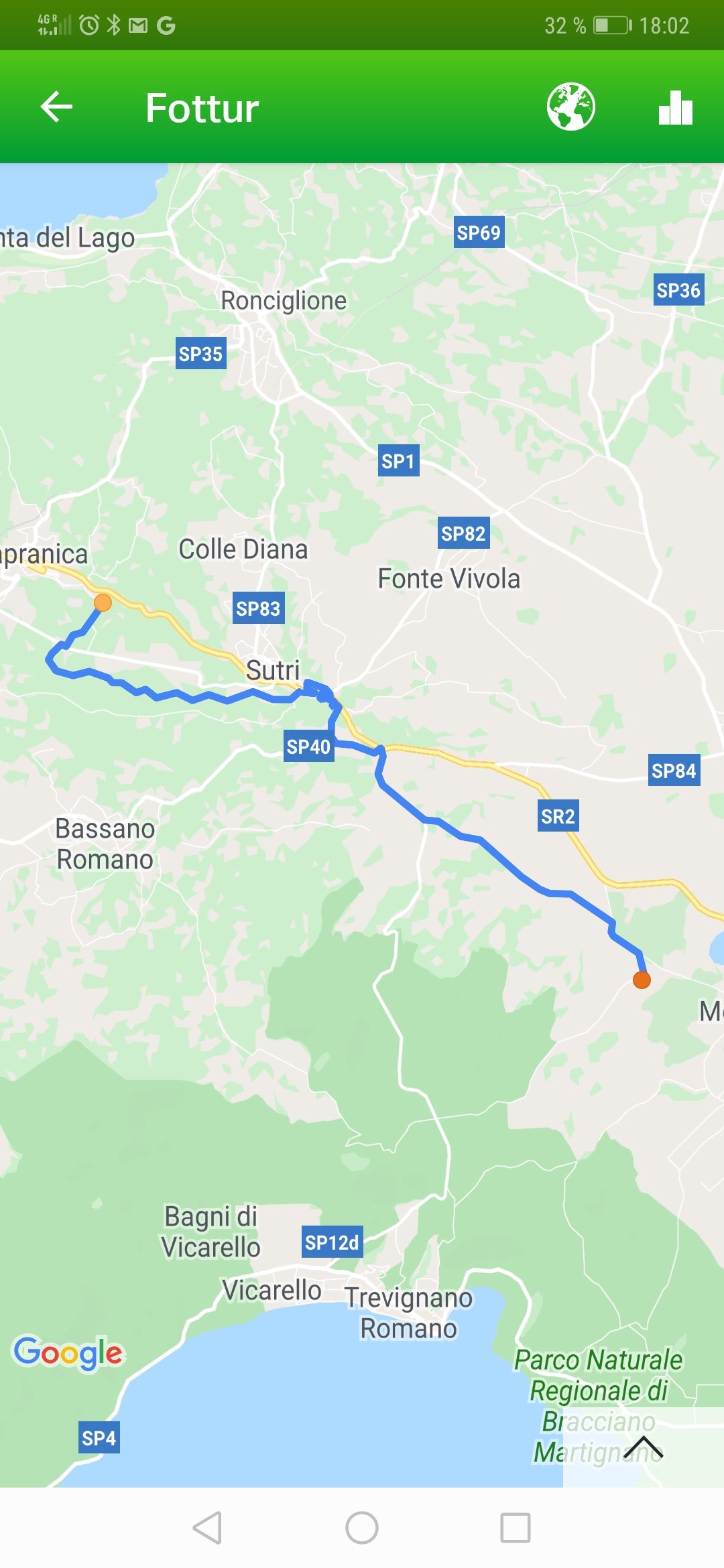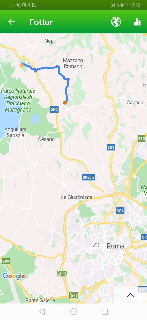 En lang, men fantastisk fin dag for Betty og meg. Det varslede regnet uteble (stort sett). På begynnelsen av dagen gikk vi mye på asfalt og det har vært en del opp og ned i et interessant landskap. Vi tok en lunsjpause i Formello som er enda en av disse gamle byene på en haug.