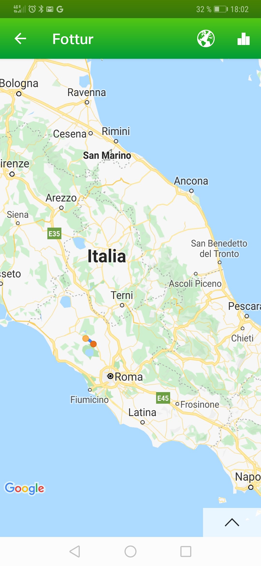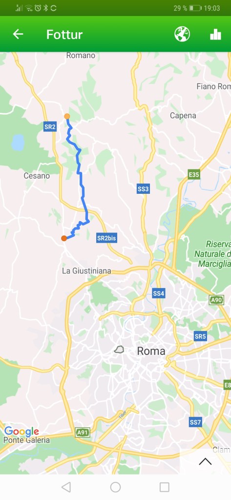 I dag startet jeg dagen med 10 min yoga og rett i en messe med nonnene. Ganske inspirerende med katolsk messe fordi alle får delta med å svare presten hele tiden. Jeg er absolutt ikke tonedøv, så jeg synger med også. Det var nattverd før kl 07:30 også. Det var lover mye regn, så vi strammet sekk og muskler og gikk på. Asfalt de 4 første, så var det mye sti og gjørme. Artig å se spor etter villsvin så nærme Roma. De romsterer rundt i jorden og lager dype groper. Verste regnet kom akkurat i det vi skulle passere en Bar, det ble Expresso med Sambuca og masse regn resten av turen.